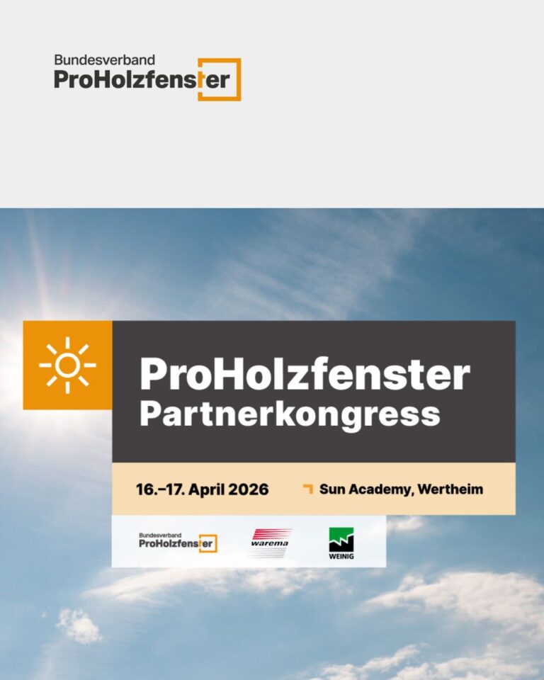 Am 16.-17. April 2026 trifft sich der deutsche Holzfensterbau in Wertheim. Unter dem Motto „Sonne, System, Synergie“ dreht sich zwei Tage lang alles um aktuelle Branchenthemen, Automatisierung und Sonnenschutz. Hinter dem Kongress stehen der Bundesverband ProHolzfenster sowie die Branchengrößen WAREMA und WEINIG.