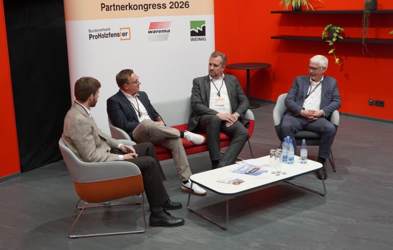 Gemeinsam mit unseren Partnern WAREMA und WEINIG richten wir unseren ProHolzfenster Partnerkongress 2026 aus. 150 Teilnehmerinnen und Teilnehmer sind unserer Einladung gefolgt. Der Kongress folgt der Leitidee: „Vom Bauteil zum System: Fenster, Sonnenschutz und Automatisierung wachsen zusammen.“ Zwei Tage lang diskutieren Betriebe Lösungen aus der Praxis für die Praxis. Mehr zum Kongress in unserer Pressemitteilung.