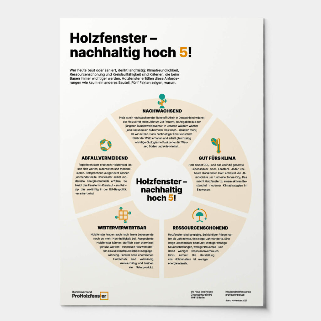 Holzfenster sind die nachhaltige Wahl – klar! Aber: Womit genau können Holzfenster eigentlich überzeugen? Unser Info-Sheet gibt Antworten.